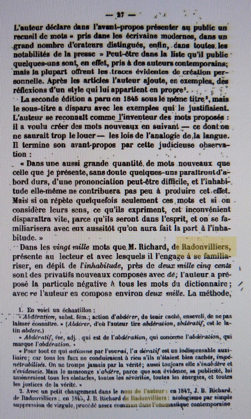 Jean-Baptiste Richard dit de Radonvilliers, création de mots nouveaux